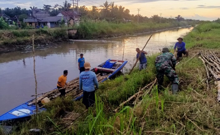 Gerbangsewu.com, Mesuji Timur, 12 April 2026- Kodim 0426/Tulang Bawang terus menunjukkan komitmennya dalam mendukung pembangunan infrastruktur di wilayah melalui pembangunan Jembatan Gantung Printis Garuda. Pada hari Minggu (12/4), kegiatan pembangunan memasuki tahap penurunan kayu gelam yang dilaksanakan di Desa Pangkal Mas Jaya, Kecamatan Mesuji Timur, Kabupaten Mesuji.